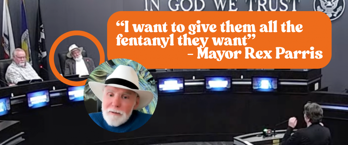 At a city council meeting in February the mayor of Lancaster, California, Rex Parris, responded to a community member who was unhappy with the leader’s ideas about putting the town’s homeless population into encampments by saying, “I want to give them all the free fentanyl they want. That’s what I want.”
